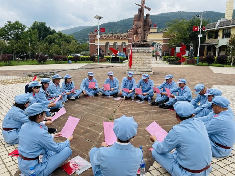 全體黨員換上紅軍服、戴上紅軍帽、打好綁腿,分成兩列縱隊,邊齊步走邊高唱紅歌,重走長征路。“短短2公里,讓我體會到紅軍當年充滿理想、用意志和勇氣譜寫的長征精神?!?/span>