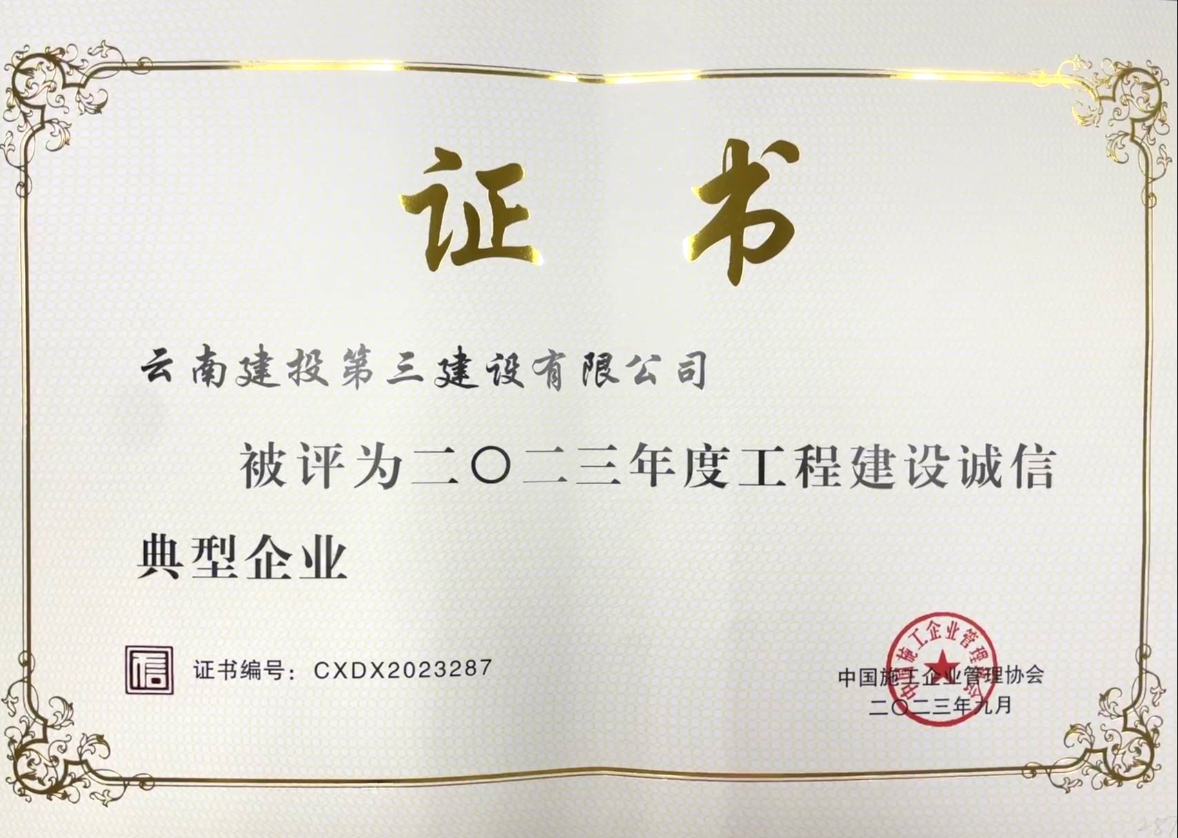 近日,公司順利通過中國施工企業(yè)管理協(xié)會(huì)組織的2023年度誠信典型企業(yè)申報(bào)評(píng)選以及信用評(píng)價(jià)復(fù)評(píng)工作,獲評(píng)“2023年度工程建設(shè)誠信典型企業(yè)”“2023-2026年工程建設(shè)AAA信用等級(jí)企業(yè)”“2023年度工程建設(shè)信用星級(jí)企業(yè)”,獲得工程建設(shè)企業(yè)信用星級(jí)15星。