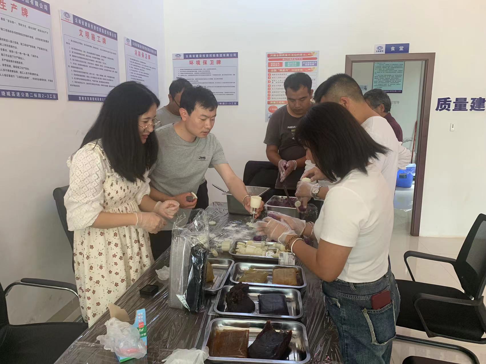 “我來揉面!”“我來和餡!”每到一個項目部,職工們都爭先恐后地參與活動。大家高高興興地圍在一起,把餡料包進面餅里,再把包好餡的面餅放進模具輕輕一壓,一個個制作精美的小月餅出爐了。